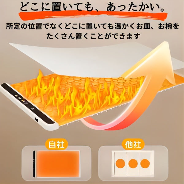 テーブルに置くだけで、できたての温度をそのままキープ。