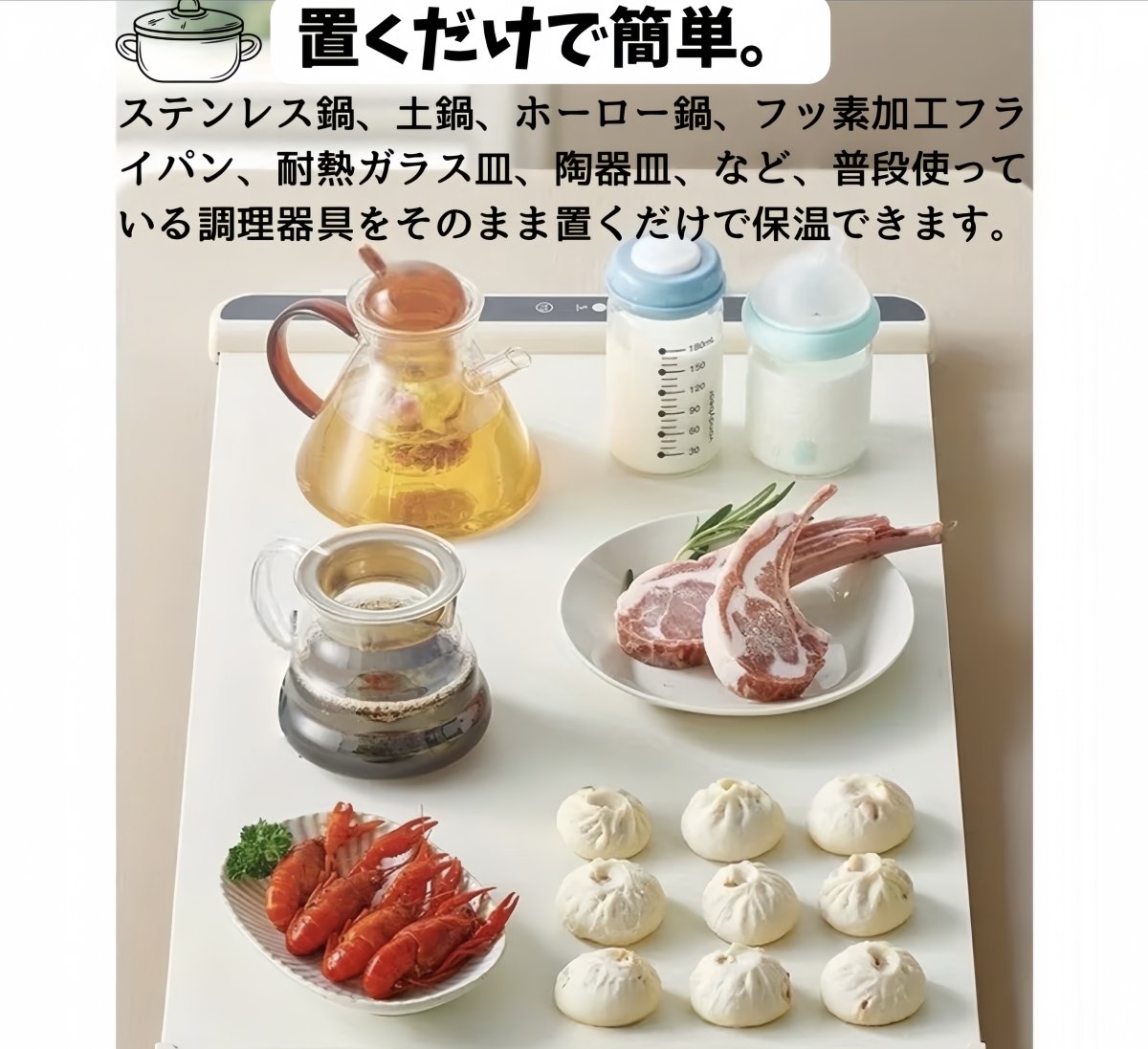 テーブルに置くだけで、できたての温度をそのままキープ。