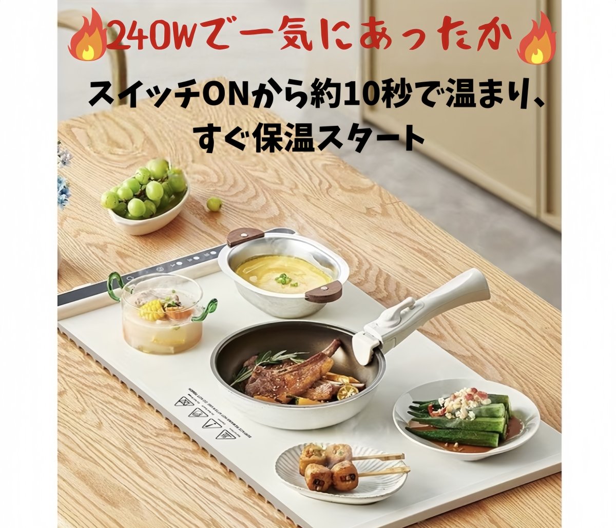 240Wの高火力により、わずか10秒で温かさを実感。忙しい朝や寒い夜でも瞬時に快適。毎日の食卓で家族全員の料理を温かくキープ。